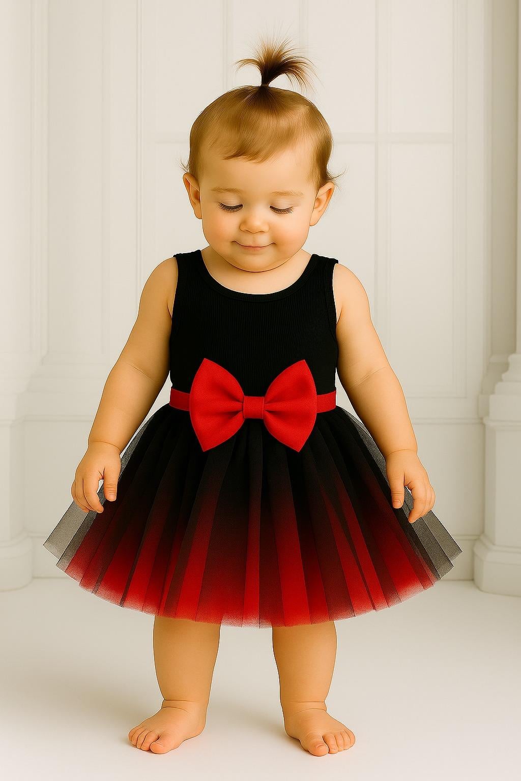 TÜTÜ ETEKKız Bebek Astarlı Önü Tokalı Beli Lastikli Üst Katman Siyah Alt Katman Kırmızı Kabarık Tütü Etek